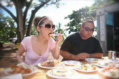 ...nuestro local de almuerzo. No es necesario decir que encomendamos comida demás, no? Haha! Y ahi está el rostro que hizo que todo el mundo se diera cuenta de que estos platos son super picantes, haha.