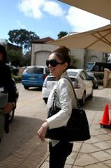 Del lado derecho, pero a lo lejos, tenemos un hombre hablando por teléfono que está exprimido entre su cabeza y su hombro.