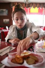 Una persona gentil que debe decidir entre hablar y comer! En la otra foto tenemos una persona gentil que coloca comida demás en su boca y después queda avergonzada!