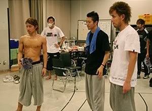 Entonces, ellos tres son los nuevos miembros de mi equipo de bailarines! De derecha a izquierda tenemos a Nii-yan, Rocky y Kazuma. En el fondo tenemos a Shu-chan, el hombre enmascarado! Haha!