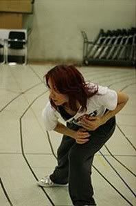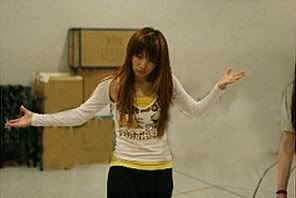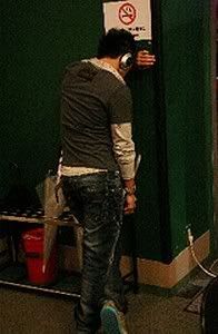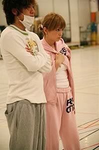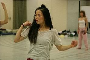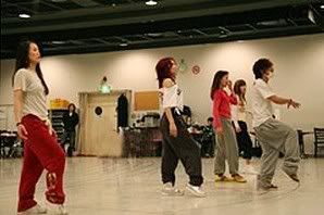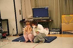 ...usando toda sa experiencia en el ensayo, enseñando la nueva coreografia a todas las niñas! En la otra foto, del lado de afuera del estudio, el "hijo de Dios" Zin-San en profunda meditación!