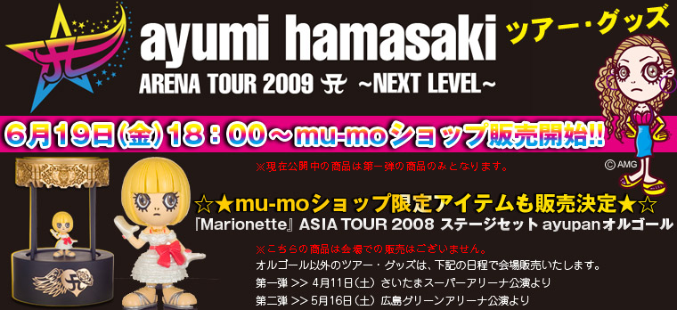 El listado de goodies del ARENA TOUR 2009 A ~NEXT LEVEL~ ya esta disponible en la tienda online mu-mo, sin embargo lo que aun no esta disponible, es la compra de alguno de ellos.